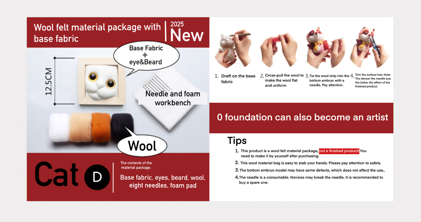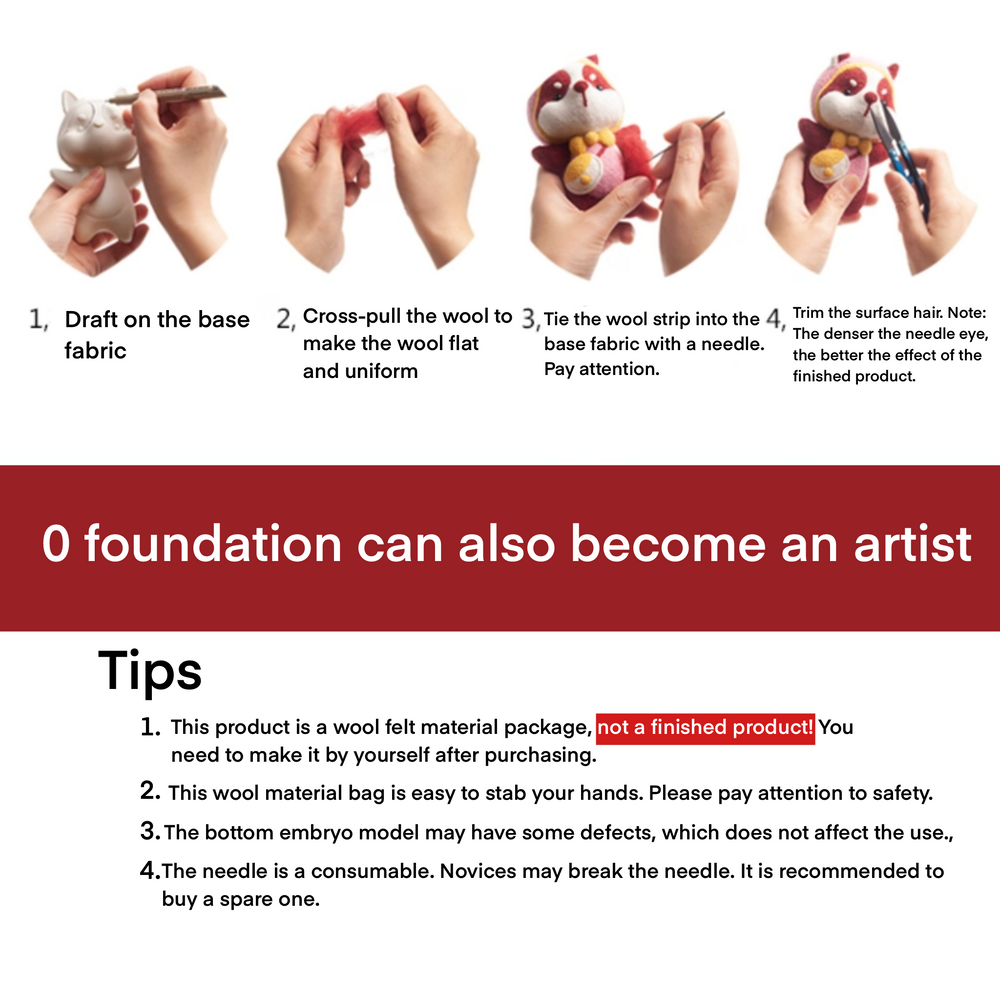 • Includes everything you need  — Includes a pre-shaped base model, eyes, nose, needle, wool and foam pad.