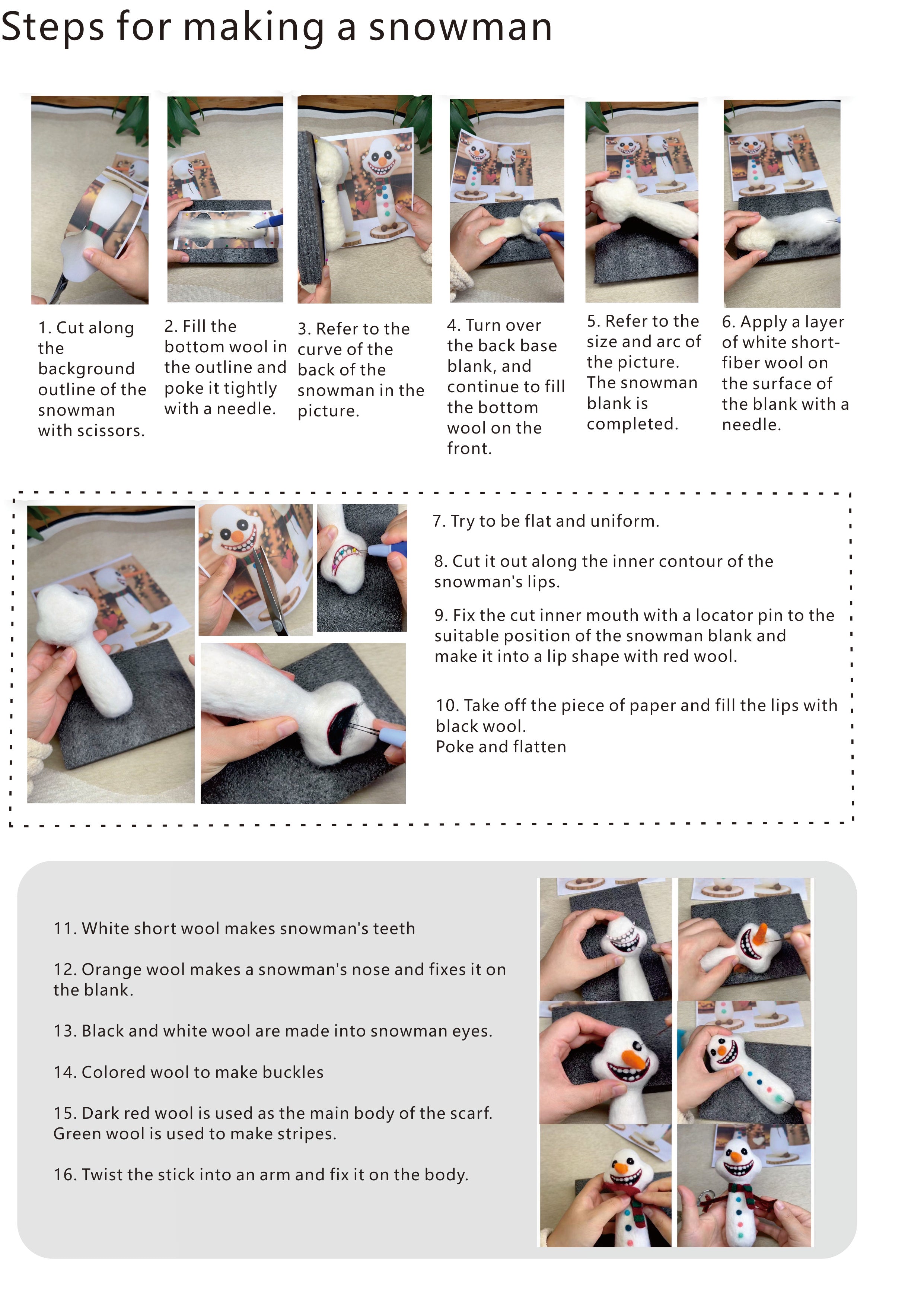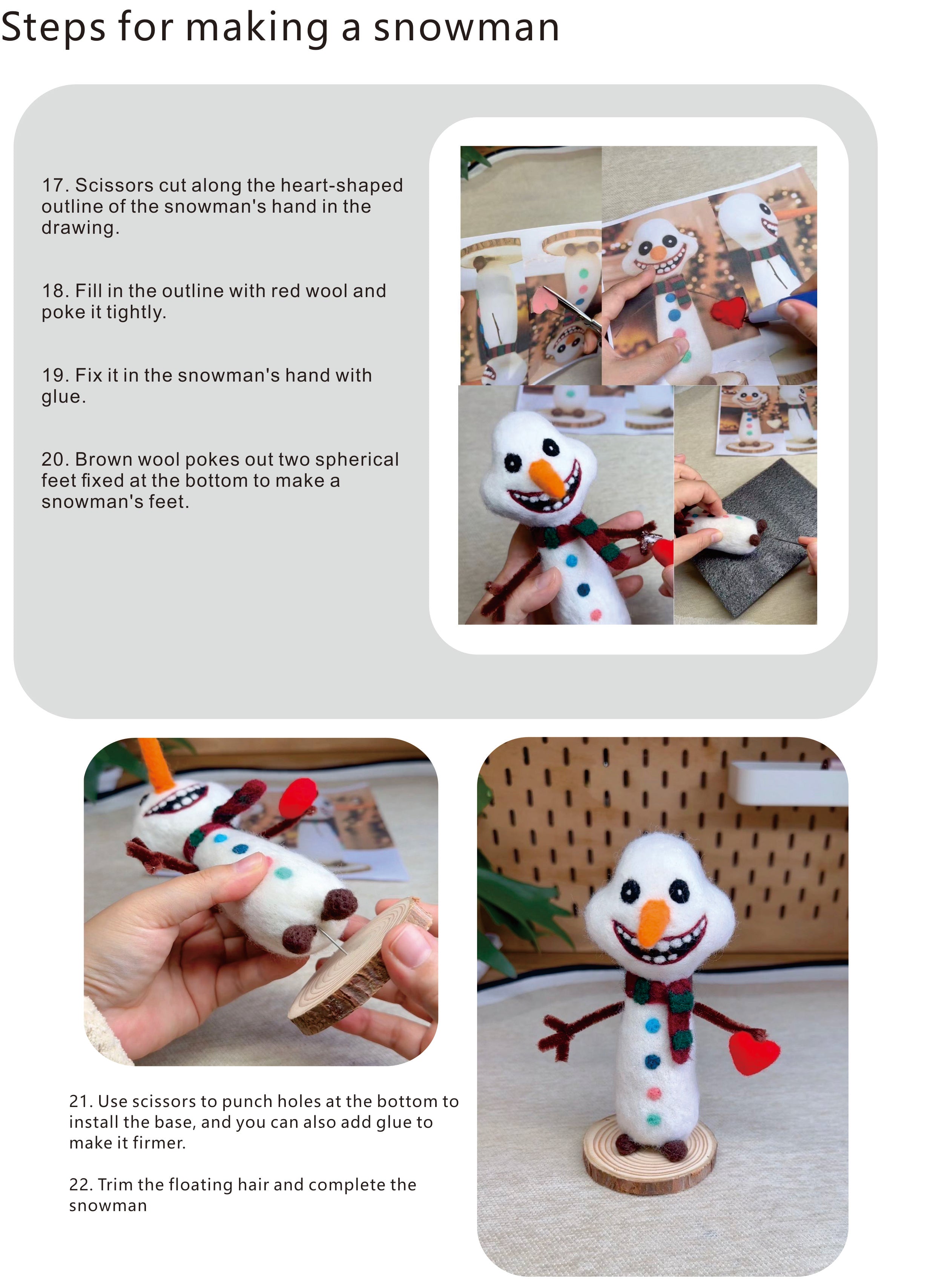 Make your first felt snowman in one cozy evening.?Zero experience required —— just follow the step-by-step video and photo guide. Fun, relaxing, and gift-ready for the holidays.