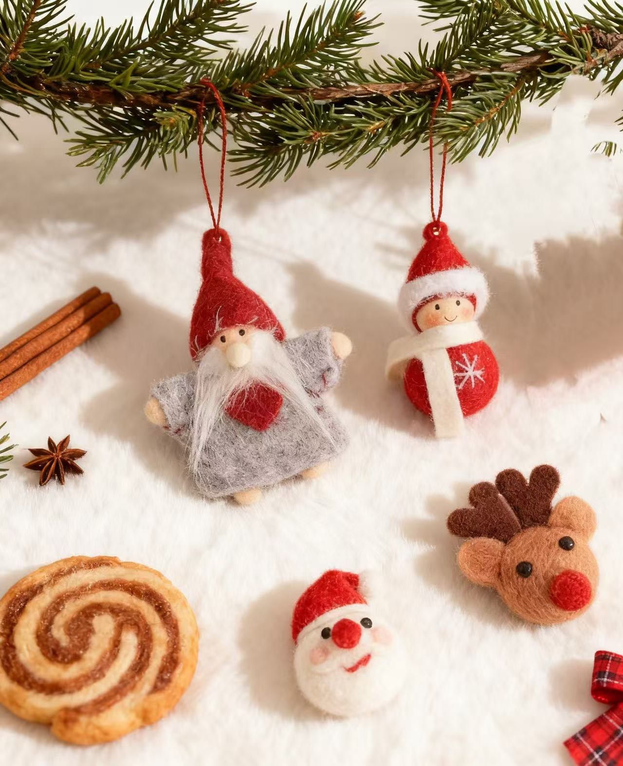 Celebrate the magic of Christmas with these charming handmade wool felt ornaments!