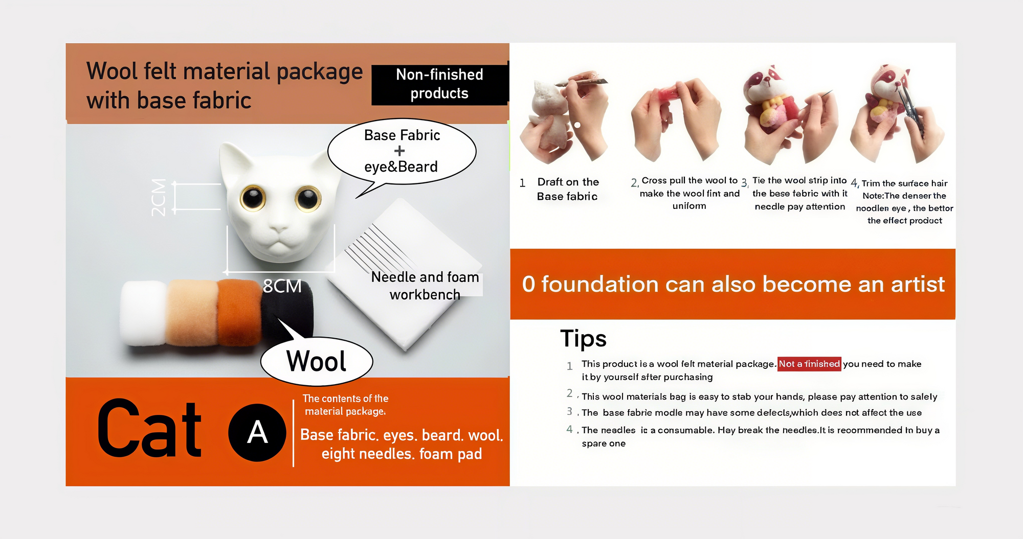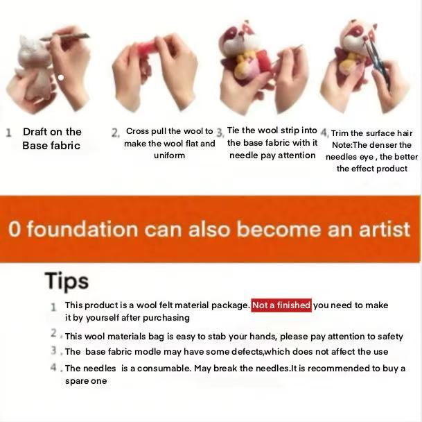 - Includes everything you need — Includes a pre-shaped base model, eyes, nose, needle, wool and foam pad.