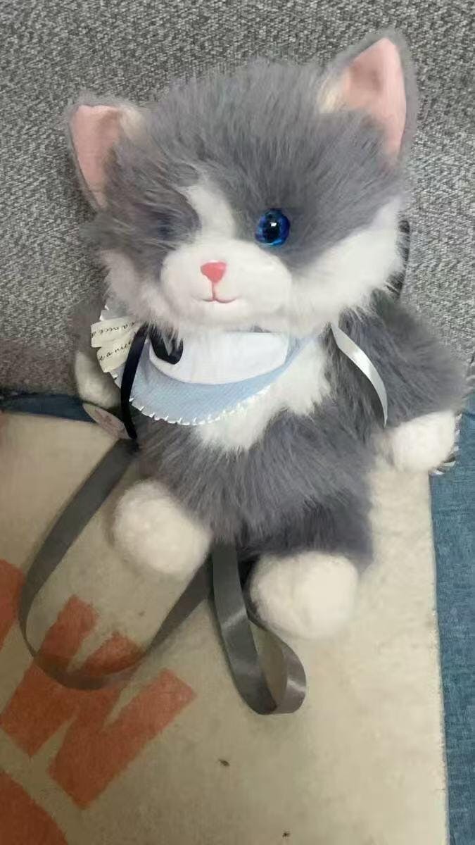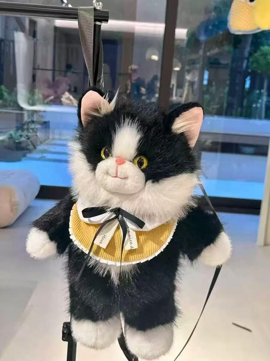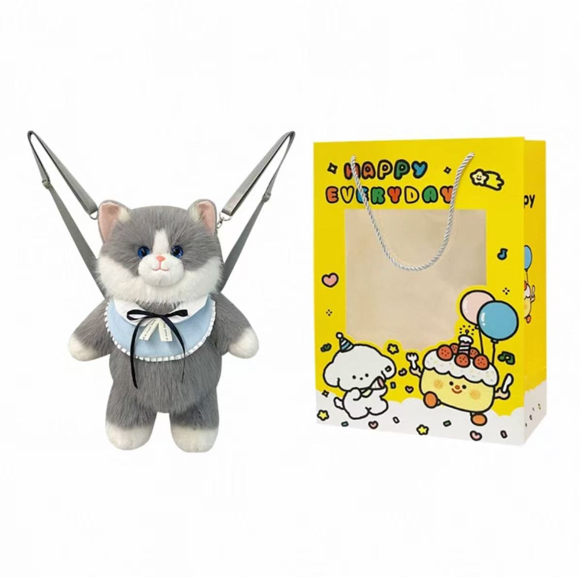 This adorable plush cat backpack brings a touch of cuteness and whimsy to your everyday style. Crafted from high-quality, soft materials, the backpack features an ultra-realistic design of a fluffy, plush cat complete with large, expressive eyes, a ribbon bow around its neck, and a vibrant coat. The backpack is designed for comfort and practicality, featuring adjustable shoulder straps that make it easy to carry. Whether you're looking for a unique accessory for your daily outfit or a fun gift for a cat lover, this lovable plush cat backpack is sure to bring joy and a playful vibe to any look.