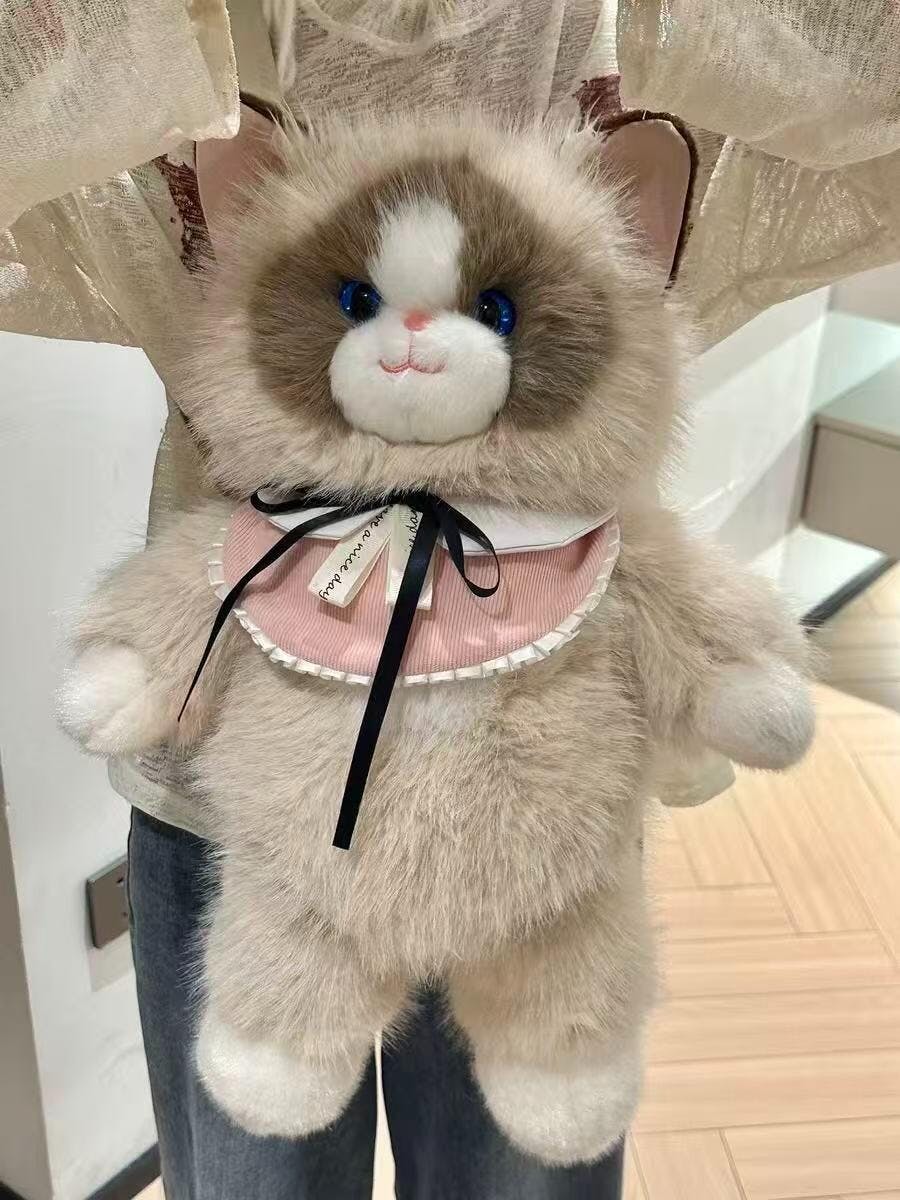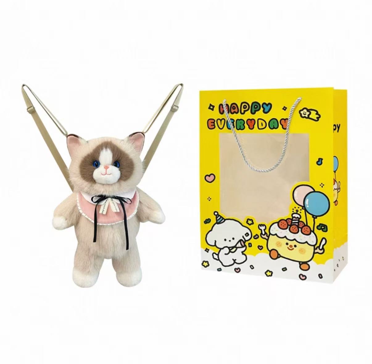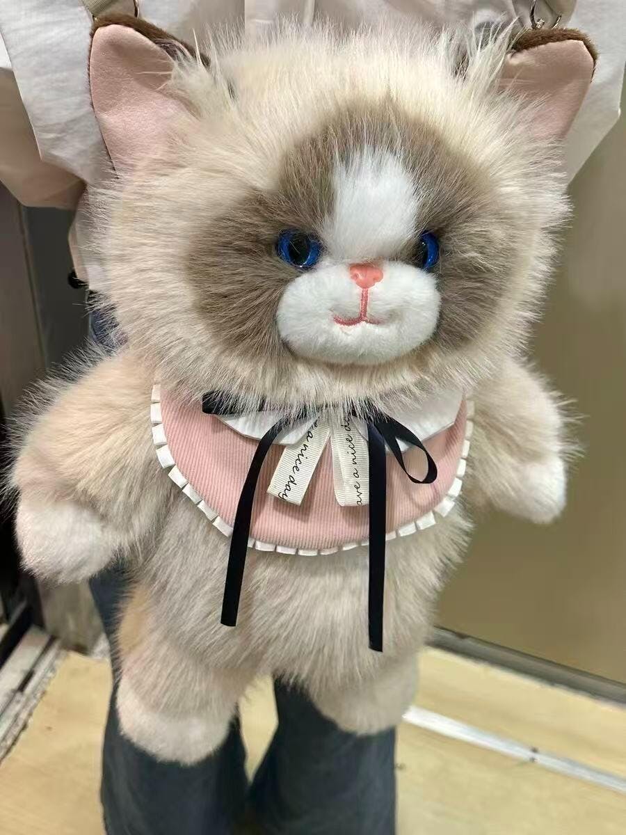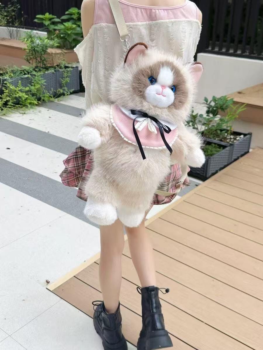 A super-soft, hyper-cute backpack that looks like a real ragdoll cat—complete with 3D ears, bright eyes, and a ribbon bib. Designed for everyday carry and irresistible hugs.